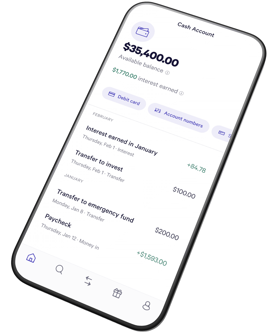 Who says you should have to choose one or the other? Wealthfront isn’t a bank, but we work with program banks to get you an industry-leading Annual Percentage Yield (APY), the security of FDIC insurance, and a full array of fee-free, no-strings-attached checking features — all wrapped up into one label-defying package we call a Cash Account.