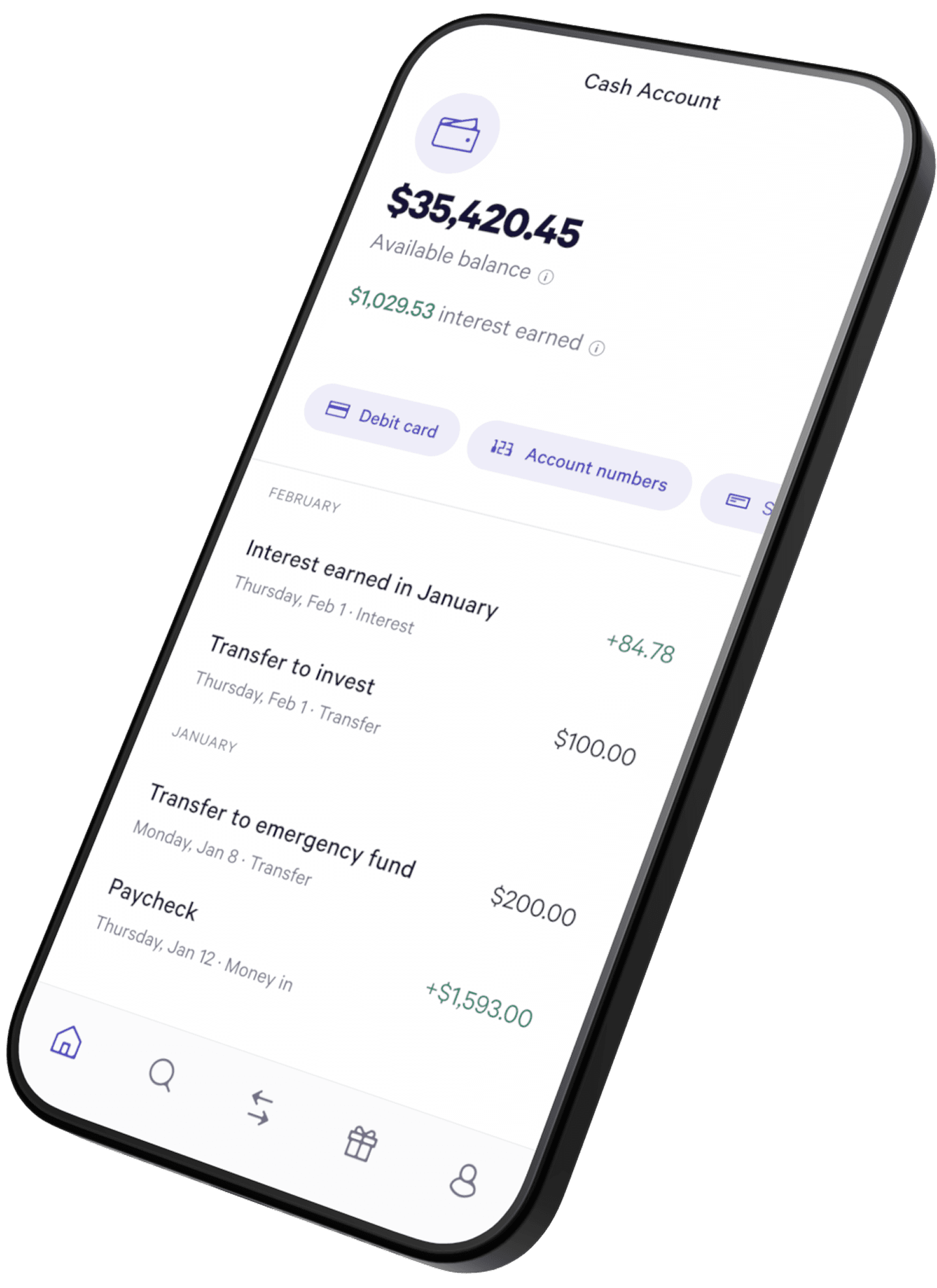 Who says you should have to choose one or the other? Wealthfront isn’t a bank, but we work with program banks to get you an industry-leading Annual Percentage Yield (APY), the security of FDIC insurance, and a full array of fee-free, no-strings-attached checking features — all wrapped up into one label-defying package we call a Cash Account.